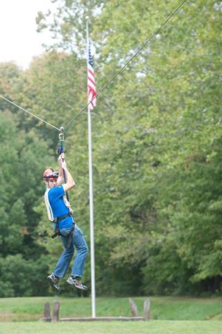 Photo: http://isuphoto.smugmug.com/Events/Field-Campus-Open-House-2012/i-DdmkPPj/0/L/FieldCampusOpenHouse-7968-L.jpg - Michael Bush, a freshman at Indiana State University, rides a zip line Sept. 21, 2012 at the Sycamore Outdoor Center, formerly known as the ISU Field Campus. (ISU/Rachel Keyes)