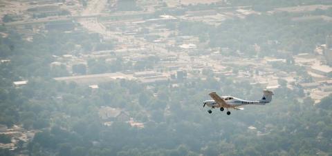 Photo: http://isuphoto.smugmug.com/Other/Media-Services/Media-Technology/Flight-Academy-2013/i-GdhSwRV/1/3X/09_11_13_flight_academy-5973-3X.jpg - A plane from the Indiana State University Flight Academy flies over the south side of Terre Haute Sept. 11, 2013. (ISU/Tony Campbell)