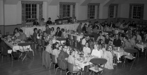 Photo: http://photos.indstate.edu/Other/ISUphotoservices/Photography-Services-Miscellan/Founders-Day-selects/i-s9JctZn/0/X3/1971-X3.jpg -- Members of the Alpha Tau Omega host a banquet on Founders Day in the Tirey Memorial Student Union (now Tirey Hall).