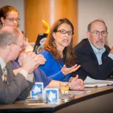 Thirty-six faculty members from Ivy Tech Community College campuses in Terre Haute and Evansville traveled to Indiana State University on Friday to discuss ways of getting more Ivy Tech graduates to transfer to State for a four-year degree.