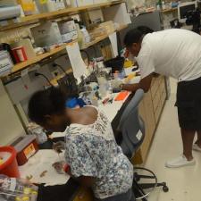 Collaboration between Indiana State University’s Summer Undergraduate Research Experience (SURE) program and Charles E. Brown African American Cultural Center’s ISUcceed program allowed two students to get hands-on experience in a biology lab.